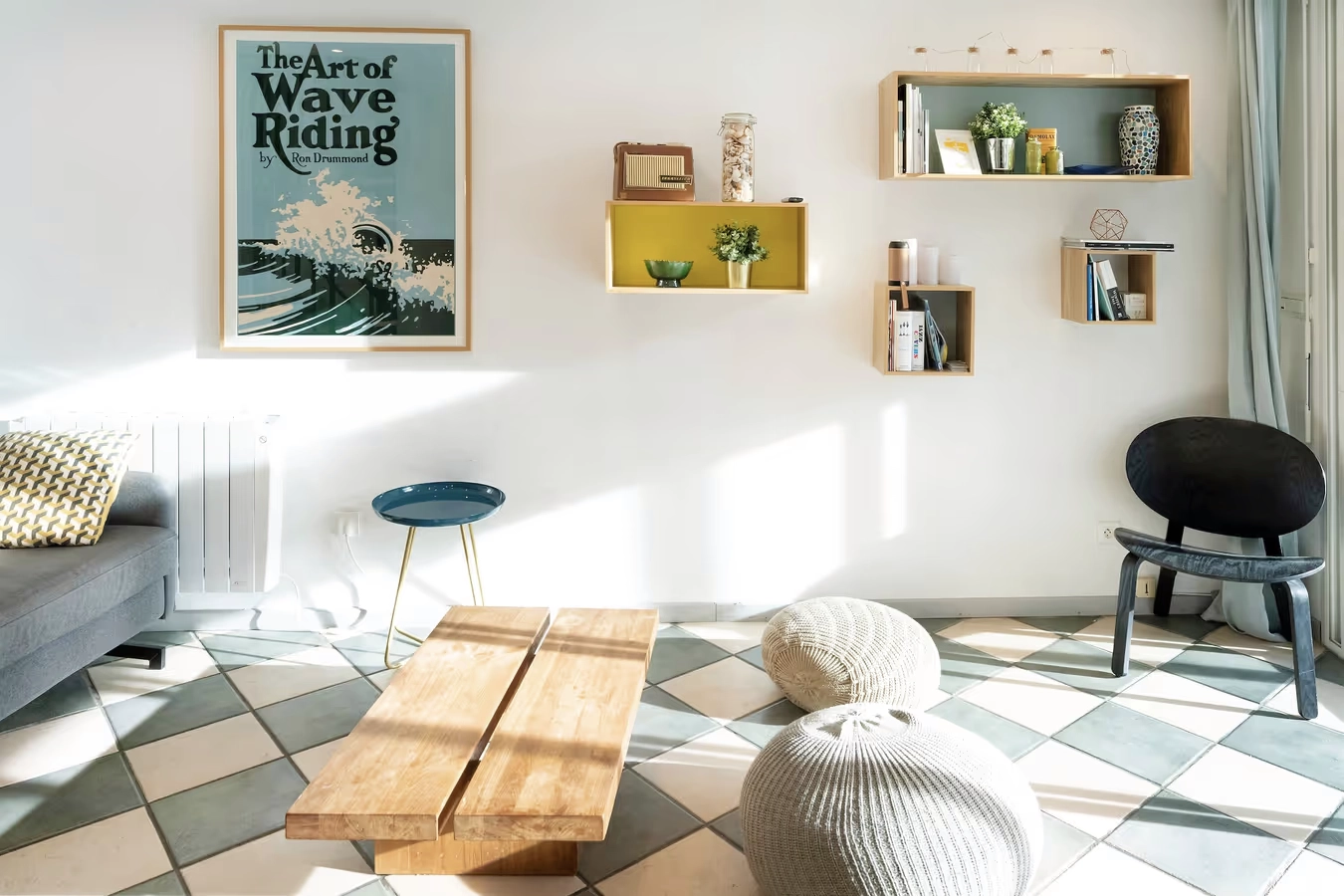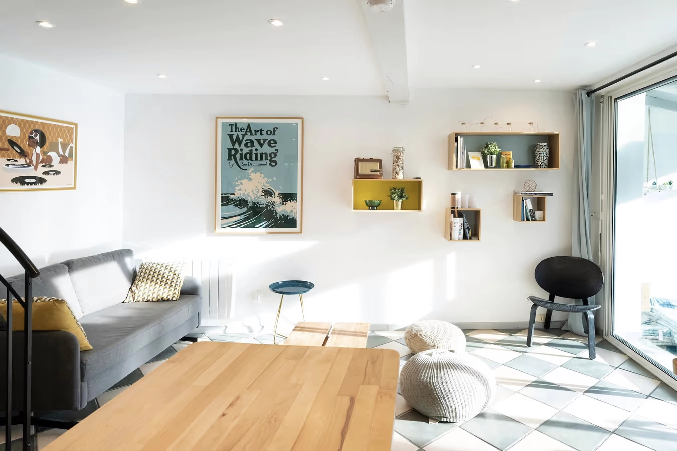 Le salon convivial dispose d’un canapé-lit.