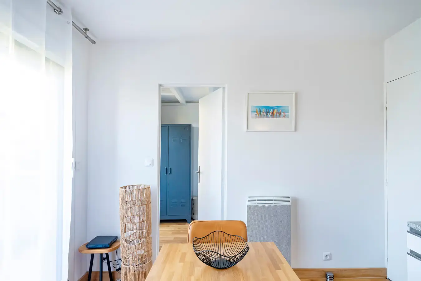 Cet appartement offre un cadre paisible avec une vue sur le parc. Idéalement situé à 100 m des plages de Penon et d’Agréou, il est à 3 minutes à pied de la plage, à 5 minutes du marché aux poissons et à 2 minutes du marché local. Le skate park et les spots de surf sont facilement accessibles à pied, tandis que le centre-ville d’Hossegor et le lac d’Hossegor se trouvent respectivement à 15 et 10 minutes à vélo, avec des pistes cyclables à proximité pour plus de commodité.